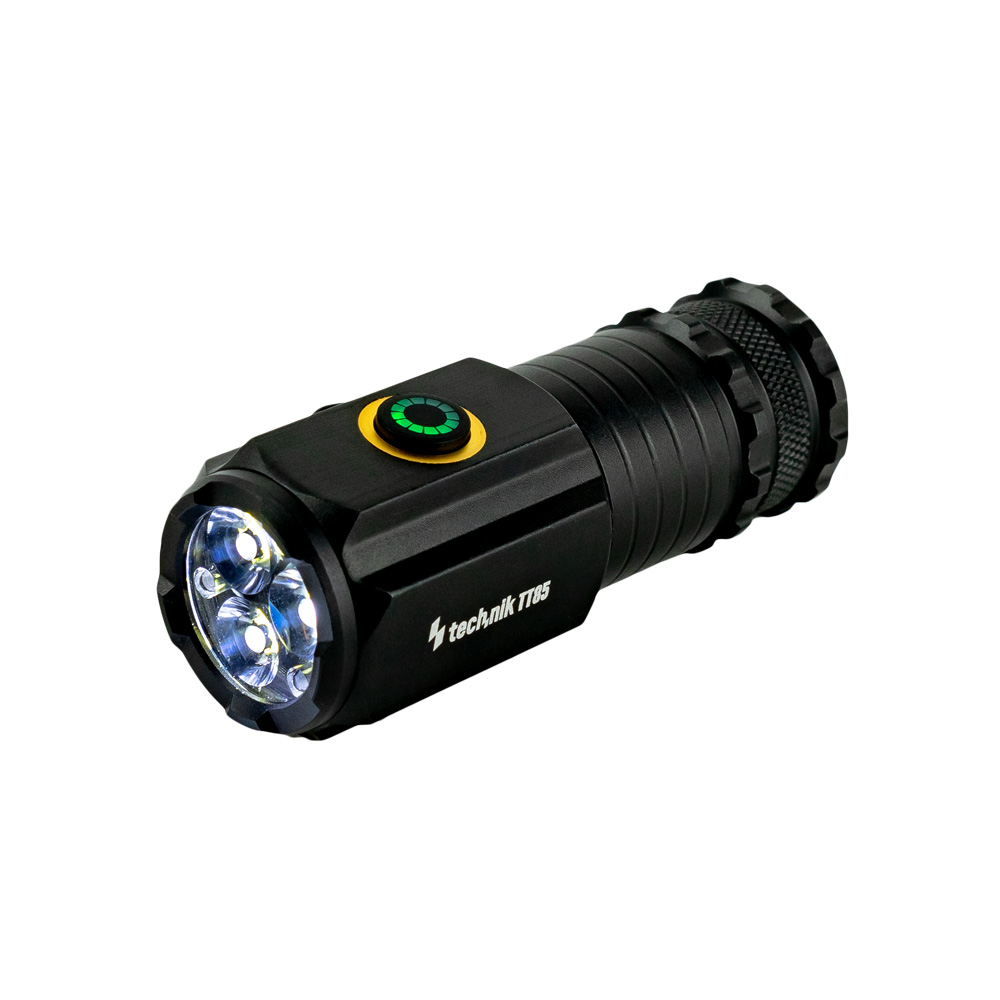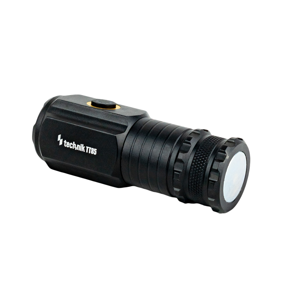 A 3 darab P35 (SFS80) LED egy háromtagú, speciális kialakítású TIR (Total Internal Reflection) lencse alatt van elhelyezve. A kiemelkedő fényáteresztő képessége miatt maximum 850 lumen fényáramra képes turbó fokozatban, ami erőteljes, tiszta fényt biztosít akár teljes sötétségben is. A 100 méteres hatótáv azt jelenti, hogy a Technik TT85 messzire világít, így távoli objektumokat is könnyedén megvilágíthatunk vele. Ez különösen hasznos lehet éjszakai túrázás, kempingezés vagy vészhelyzetek esetén.