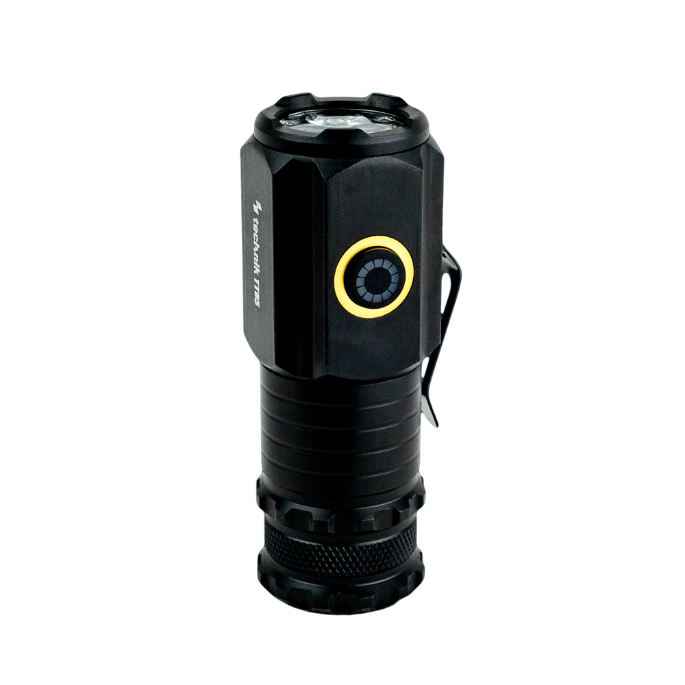A Technik TT85 különleges, egyedi kinézete azonnal magára vonzza a tekinteteket. A lámpa elegáns, mégis robusztus dizájnnal rendelkezik, amely egyszerre biztosítja a tartósságot és a stílusos megjelenést. A lámpatest anyaga repülőgépgyártásban használt alumíniumötvözet, amit ellenálló kemény eloxálással vontak be. Ezek együtt garantálják a hosszú élettartamot és a megbízhatóságot még a legkeményebb körülmények között is. A lámpatest végén elhelyezett fogaskerékre emlékeztető mintázat tovább emeli a lámpa indusztriális jellegét. A lámpatestre csavarozott rozsdamentes acél klipsz nem csak jól mutat, hanem funkcionális is.